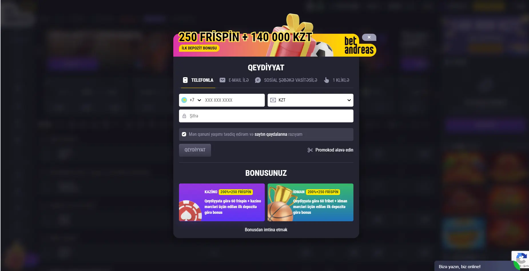 Жаңа қолданушылар Betandreas bonus алады — бірінші депозитке 100% және казиноға дейін 200 тегін айналым (Betandreas free spins). Бонусты белсендіру үшін Betandreas promo code енгізіңіз немесе мобильді Betandreas app қосымшасында тіркеліңіз.