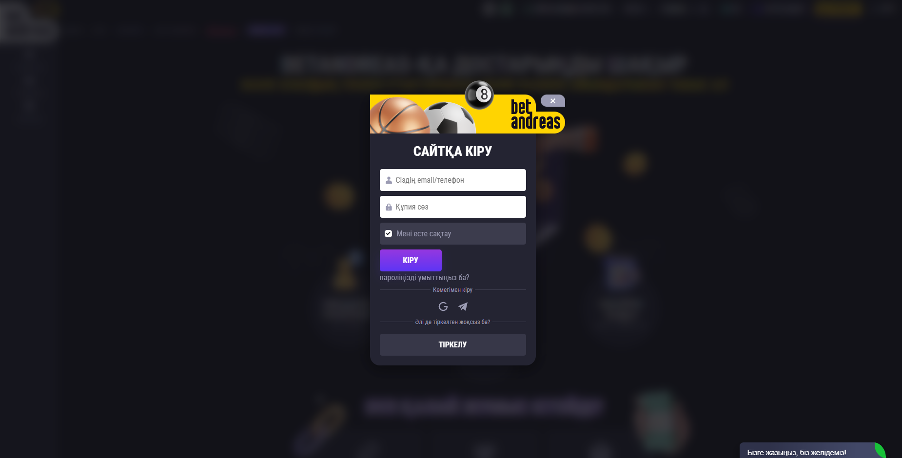 - Ресми сайт Betandreas kz немесе мобильді қосымша Betandreas app / apk арқылы жеке кабинетке кіріңіз.